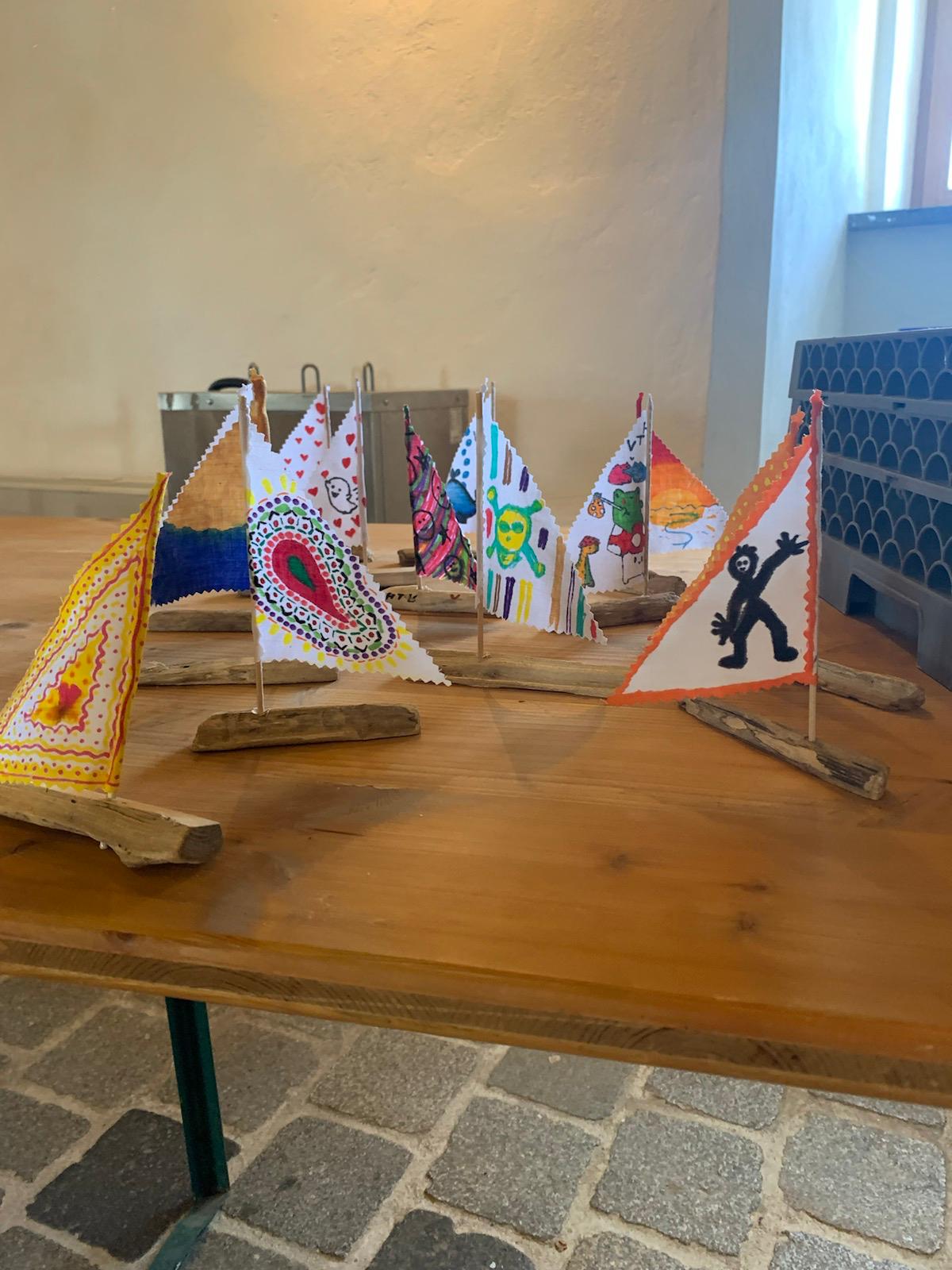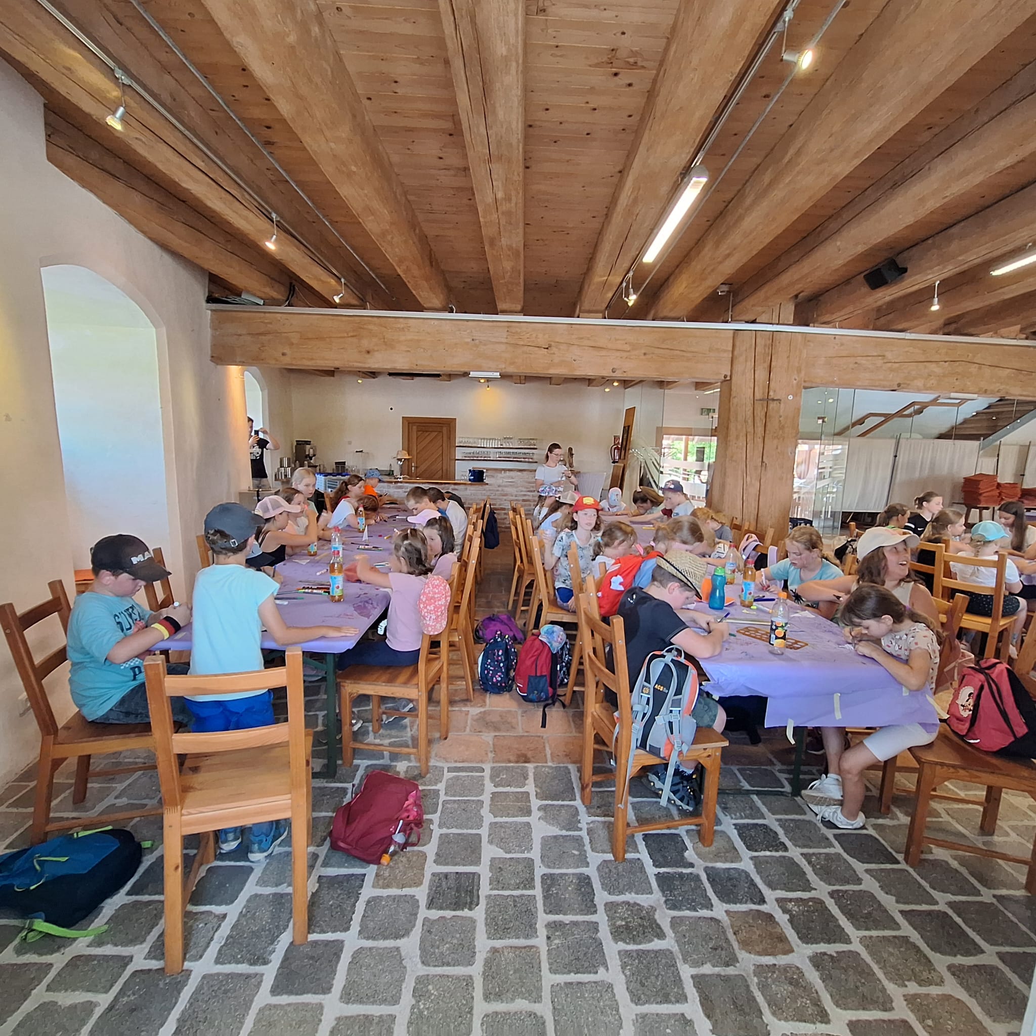 Auch bei der Bastelstation im historischen Salzstadl der Burg Frauenstein stand der Inn im Mittelpunkt. Passend zum Inn wurden unter Leitung der Eringer Trachtlerinnen kleine Schiffchen gebastelt. Im Weiteren war auch die Erlebniswelt am Unteren Inn eines der Ziele der Trachtenjugend. Am Vogelbeobachtungspunkt die Innauenwelt genau unter die Lupe genommen werden.