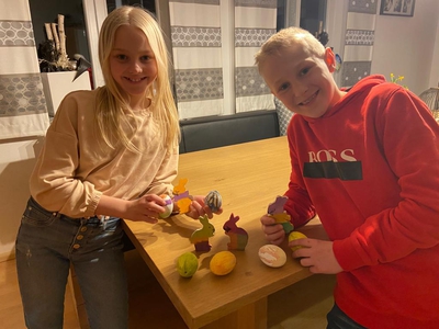 Den 3. Platz teilen sich Kerstin Kroiß mit ihrem Osterhasenpärchen aus Holz und Emilia Jäger, die ihrem lebendigen Hasenfreund mit einer tollen Zeichnung ein Denkmal setzte. Der 2. Platz ging an Familie Kroiß für eine gebackene Osterhasenfamilie. Den 1. Platz sicherte sich Lia Jäger mit einem tollen Schneehasen! Am Karsamstag brachten die Jugendleiter dann die Preise und kleinen Überraschungen bei den Teilnehmern vorbei, worüber diese sich mächtig freuten.