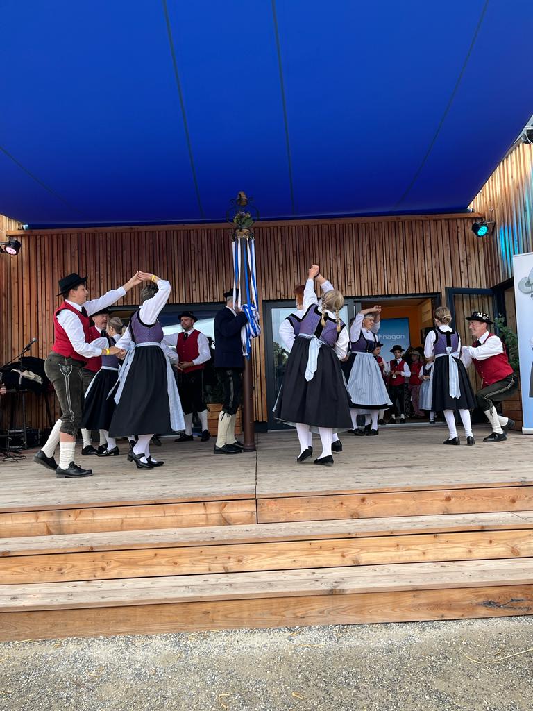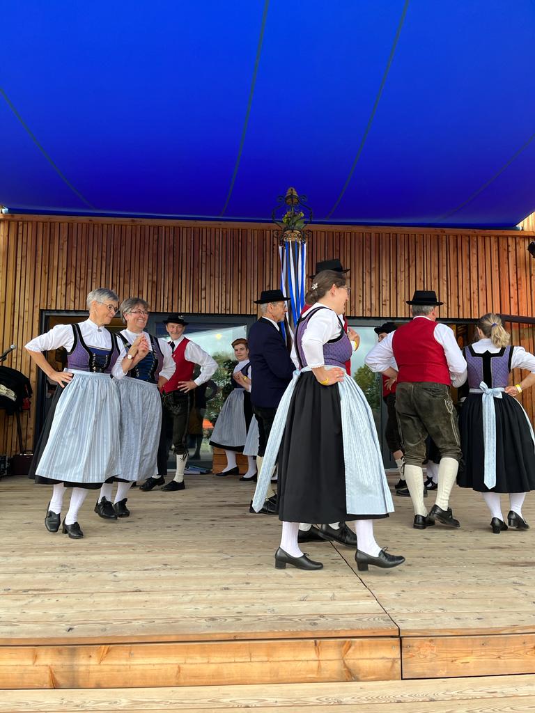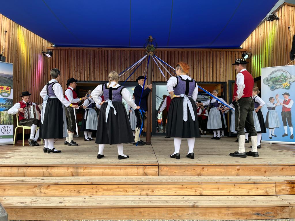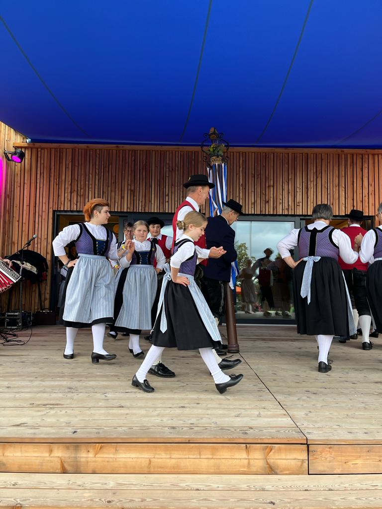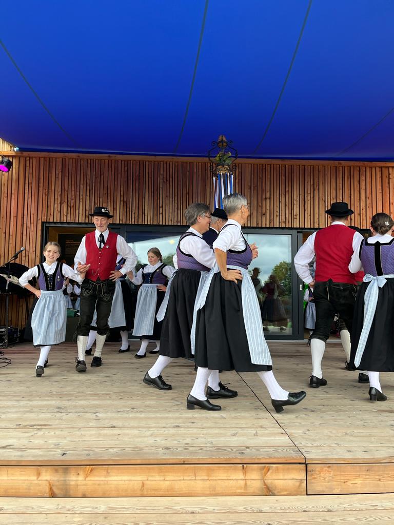Besonders die Kinder waren mit Feuereifer und Freude dabei, sie fühlten sich sichtlich wohl auf der Bühne und zeigten voller Stolz mit weiteren Tänzen, was sie gelernt hatten. Schließlich wurden noch die Sternpolka und der Marschierboarisch gemeinsam mit den Erwachsenen dargeboten.
