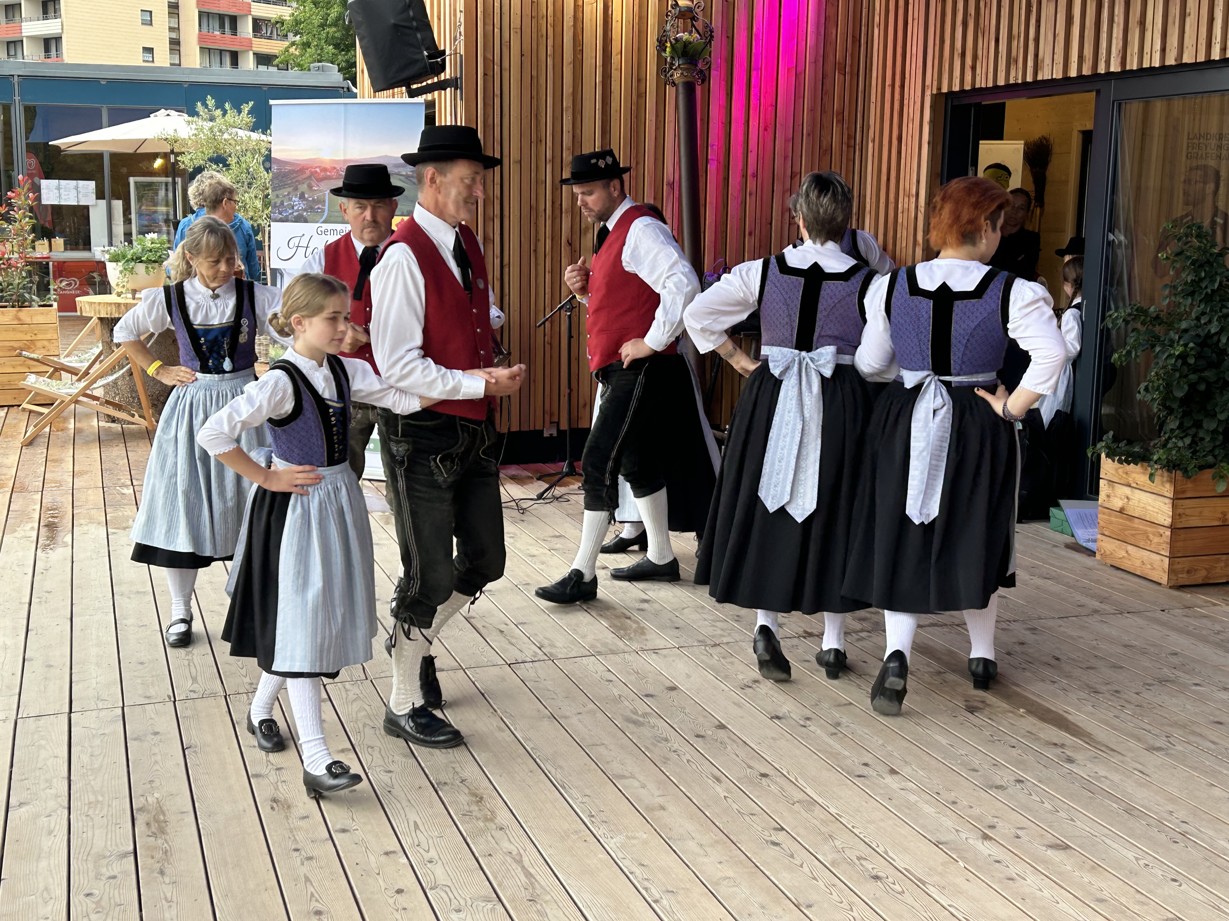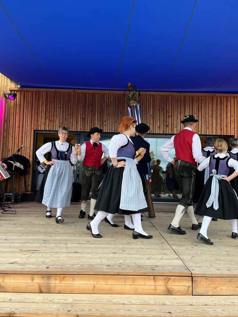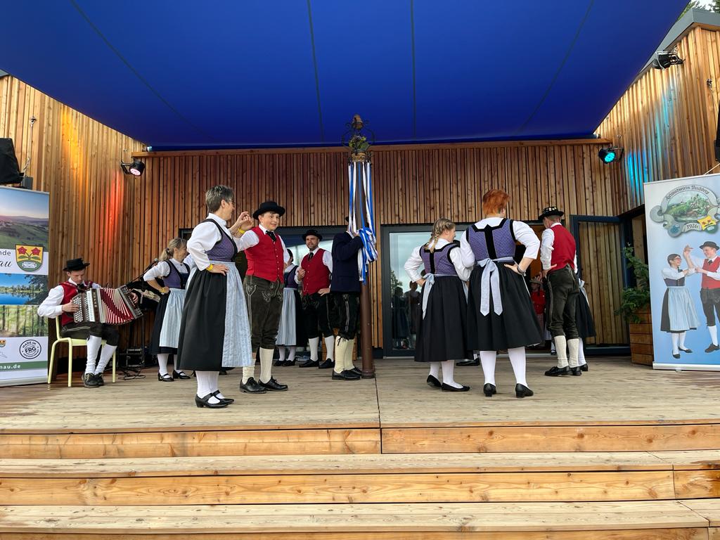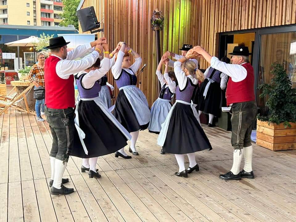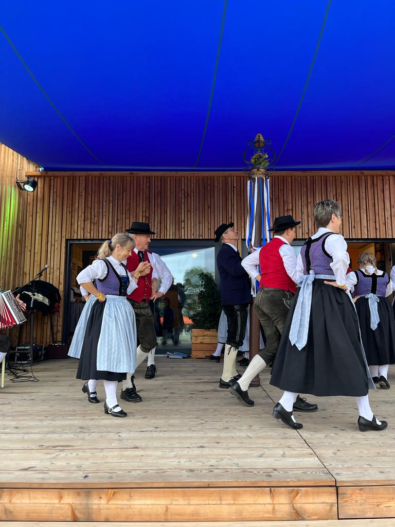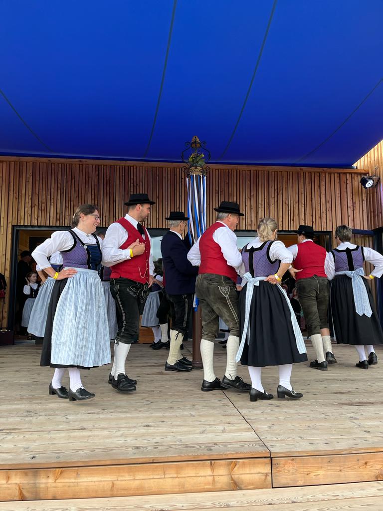 Besonders die Kinder waren mit Feuereifer und Freude dabei, sie fühlten sich sichtlich wohl auf der Bühne und zeigten voller Stolz mit weiteren Tänzen, was sie gelernt hatten. Schließlich wurden noch die Sternpolka und der Marschierboarisch gemeinsam mit den Erwachsenen dargeboten.