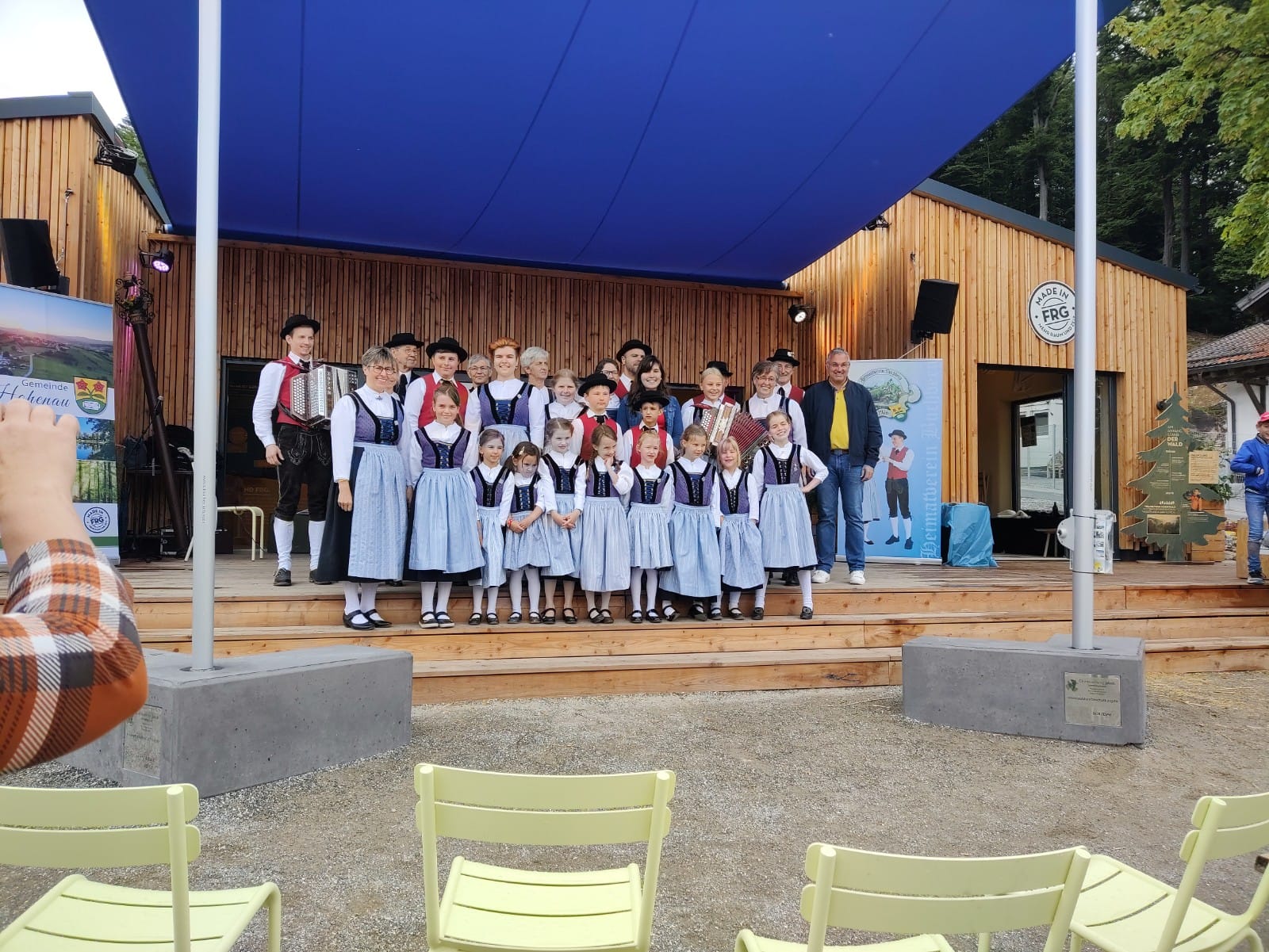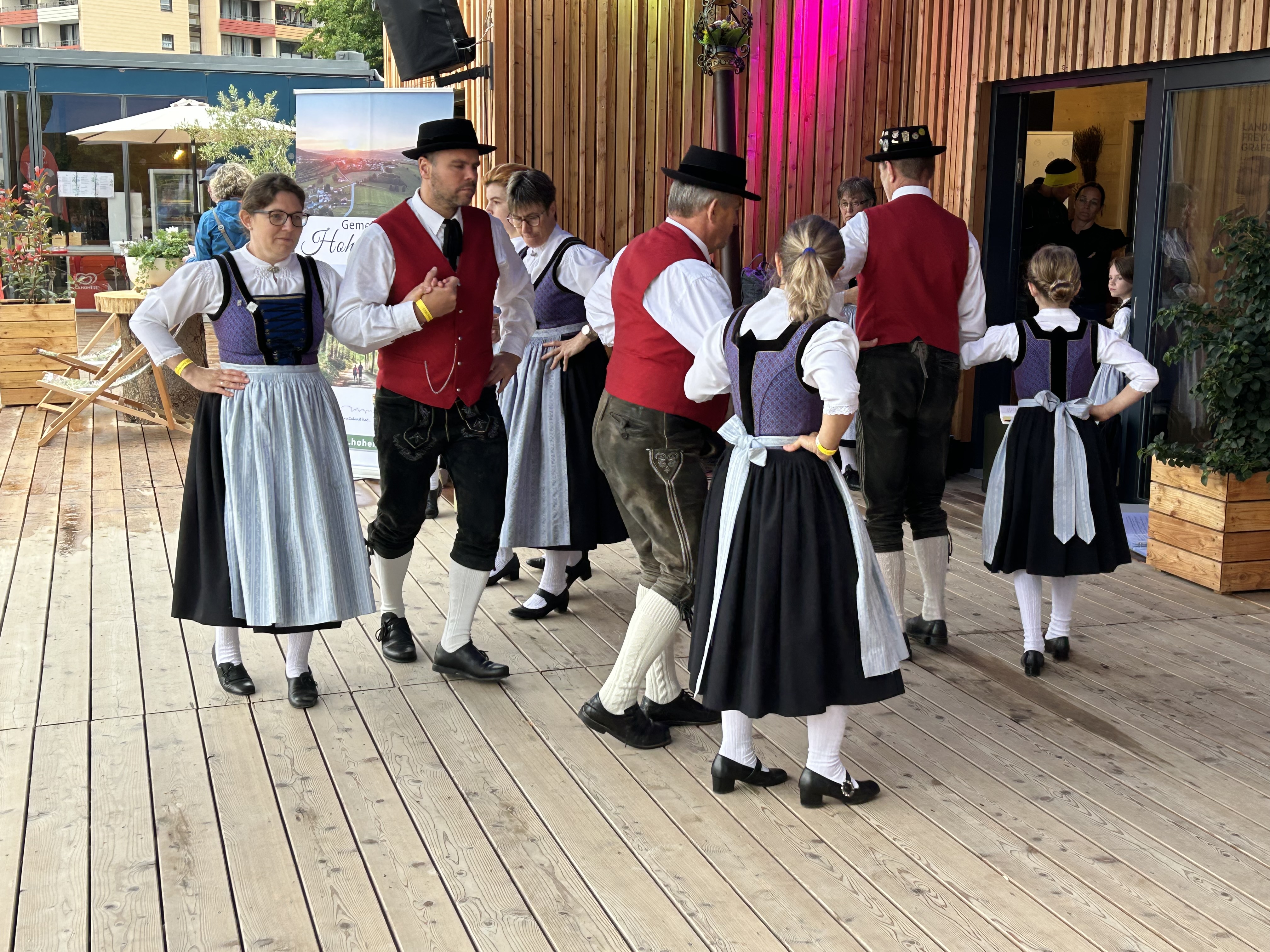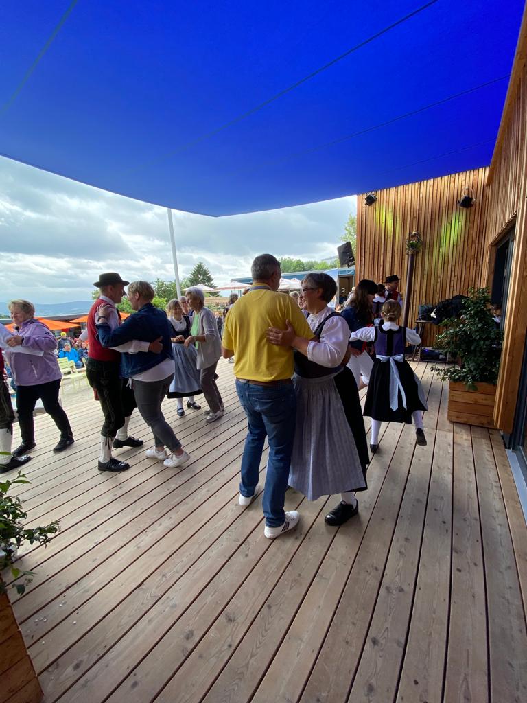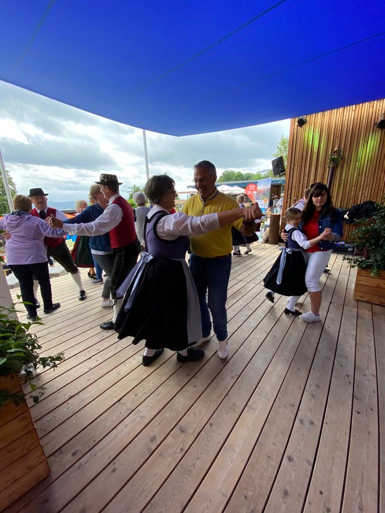 Besonders die Kinder waren mit Feuereifer und Freude dabei, sie fühlten sich sichtlich wohl auf der Bühne und zeigten voller Stolz mit weiteren Tänzen, was sie gelernt hatten. Schließlich wurden noch die Sternpolka und der Marschierboarisch gemeinsam mit den Erwachsenen dargeboten.