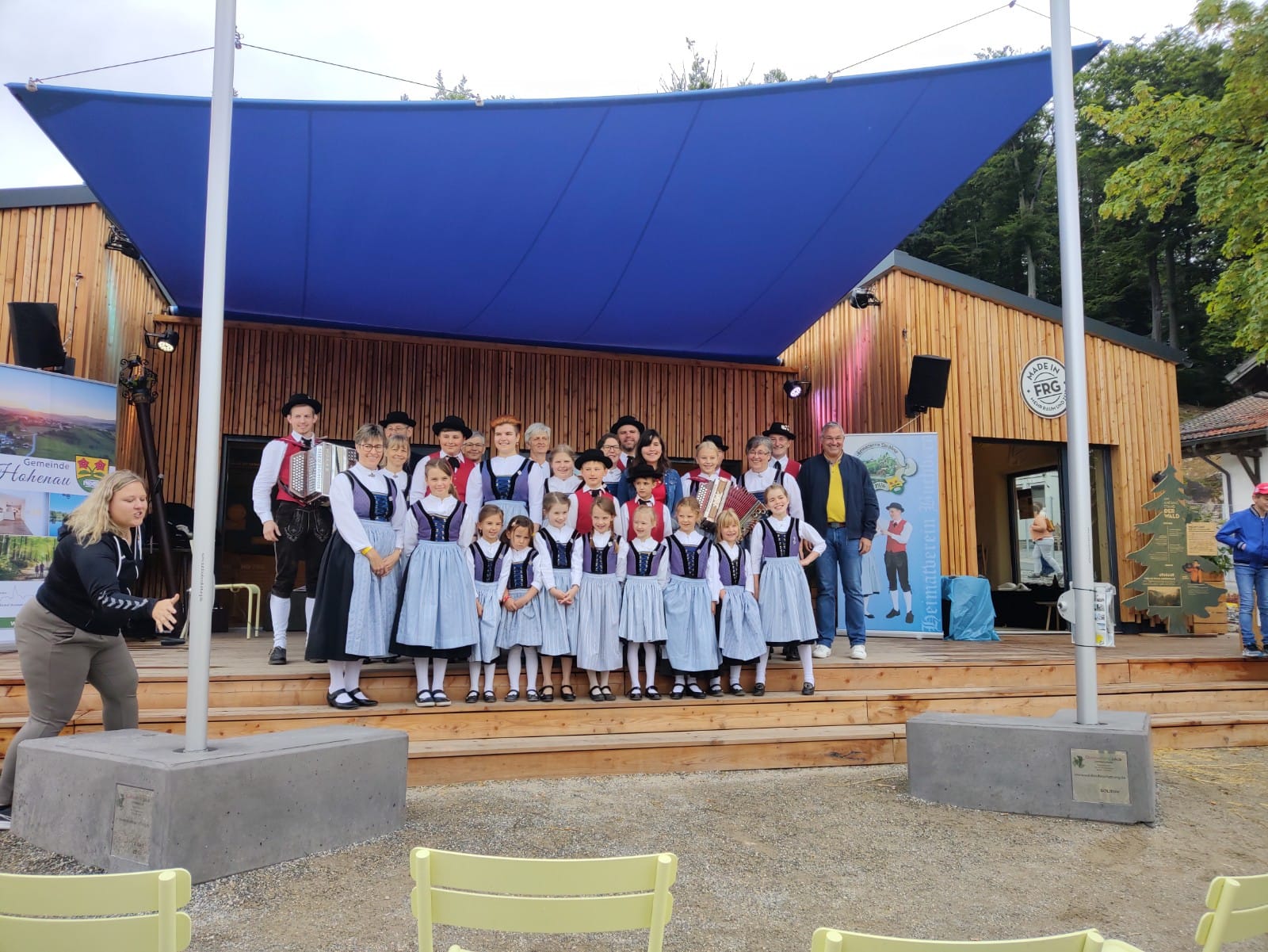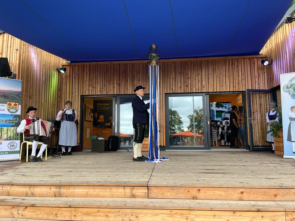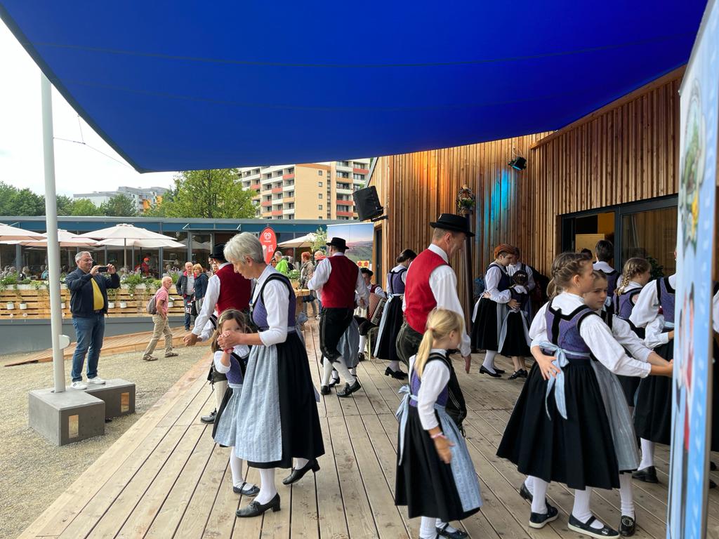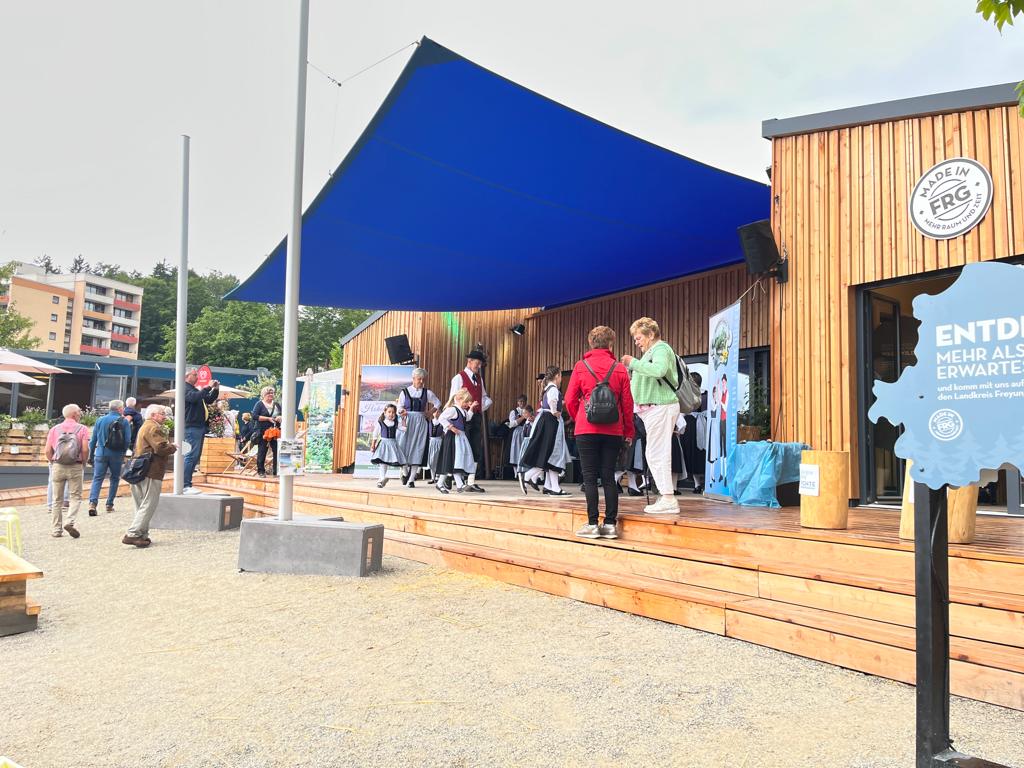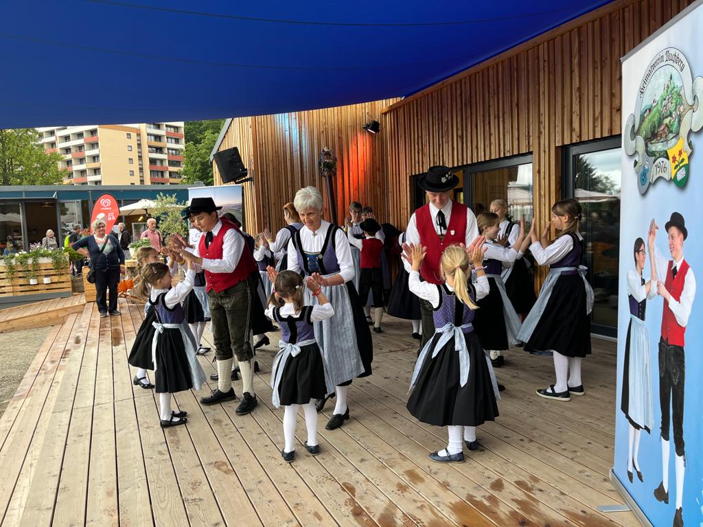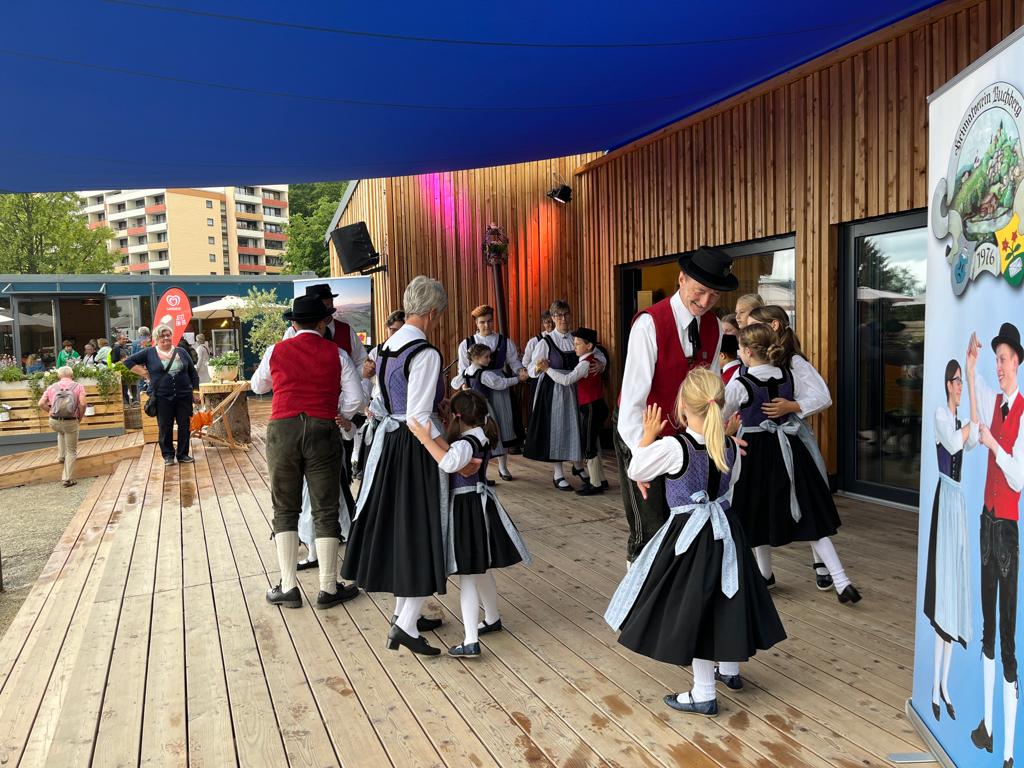 Der Heimatverein Buchberg präsentierte sich mit einem 2 1/2stündigen Programm auf der Landesgartenschau in Freyung im Rahmen der Hohenauer Gemeindepräsentation. Vorstand Regina Haydn begrüßte die zahlreichen Zuschauer vor dem Regionalpavillon und stellte den Verein und seine Ziele kurz vor. Dann eröffnete die Kindertanzgruppe mit der Sternpolka und den Tiroler Schützen den Tanzreigen. Darauf folgten die Erwachsenen mit dem Krumauer Landler und dem Mühlviertler Landler.