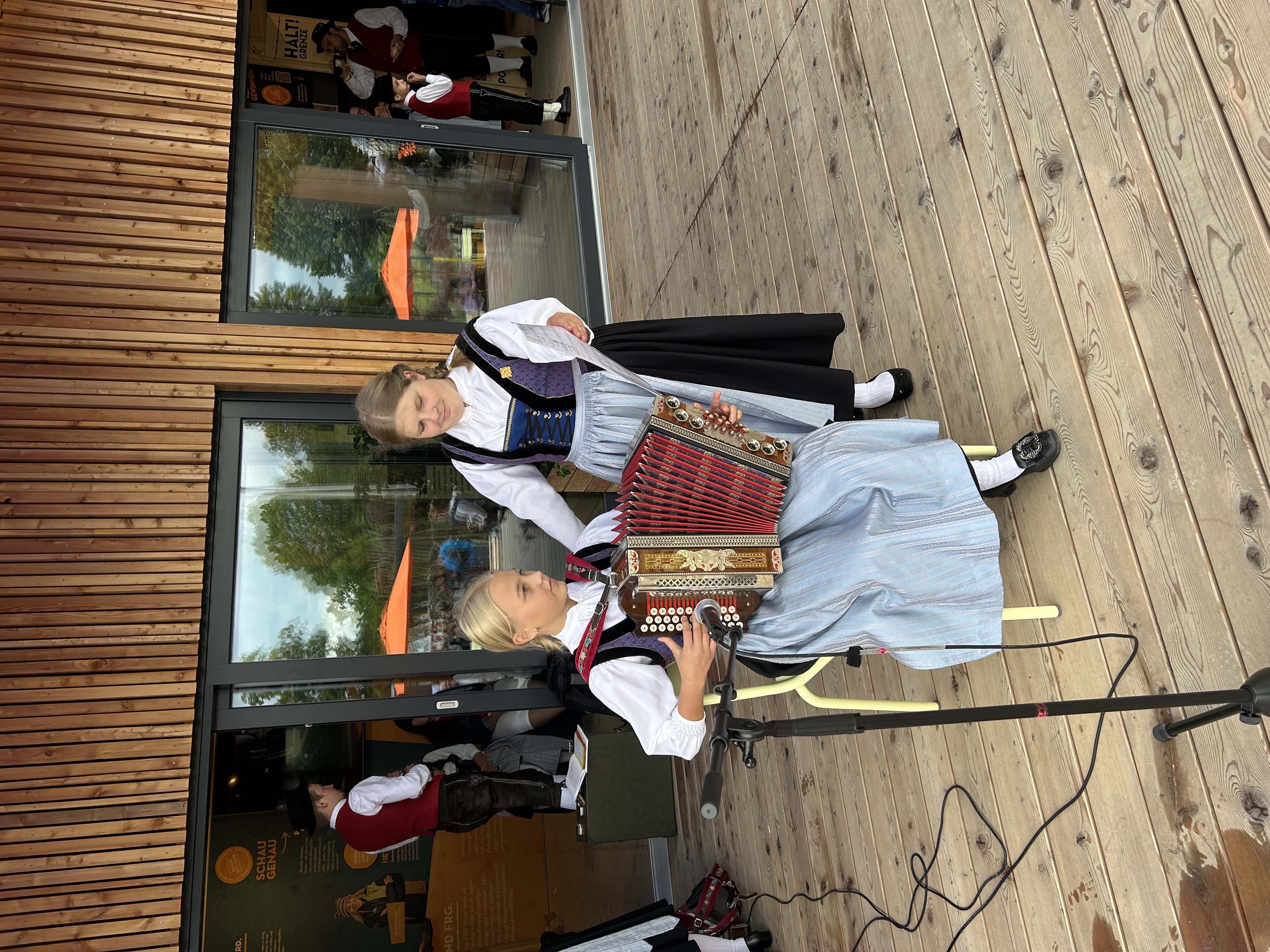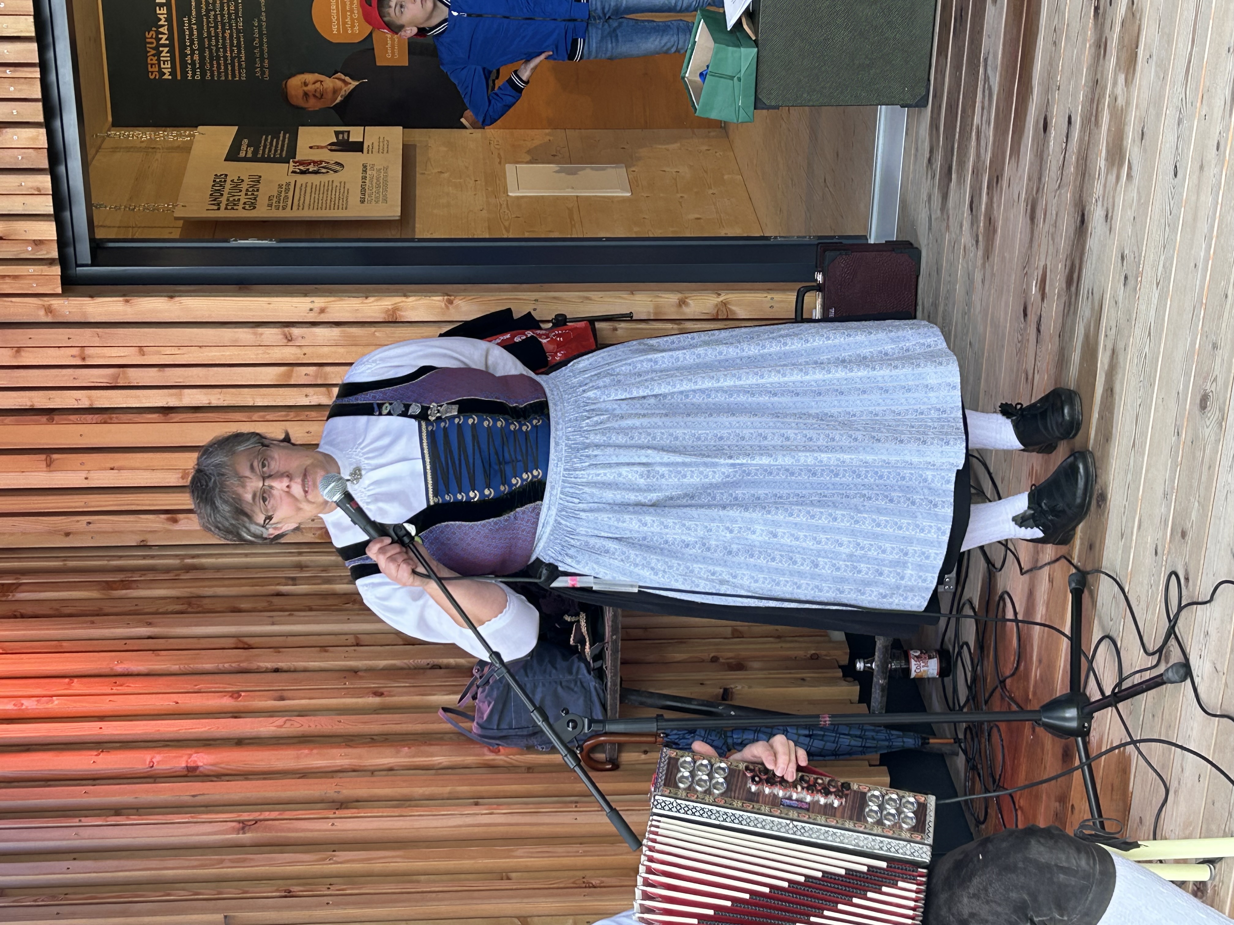 Zwischen den Tänzen boten die Musikanten Josef Küblböck und Luisa Pichler ihre Stücke, wie z. B. die "Holzrichter Polka", "Katrin Boarischer", „A Rindvieh“ oder „Nix amore“ gekonnt auf der Steirischen dar. Die Spielfreude konnte man ihnen richtig anmerken. Durch das Programm führte Regina Haydn und gab dabei auch viel Wissenswertes rund um die Buchberger Tracht und zu den einzelnen Tänzen bekannt.