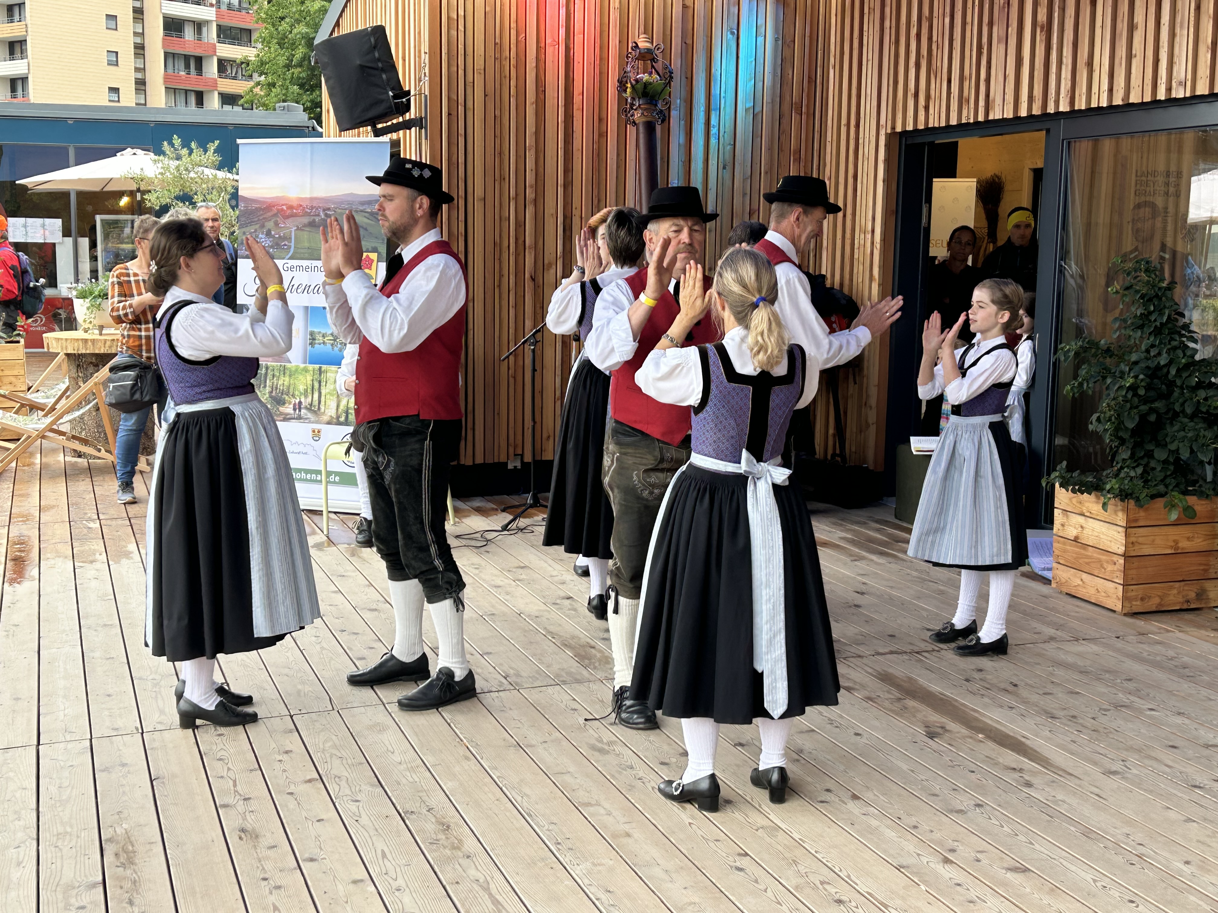 Mit der Kuckuckspolka, dem Kikeriki und dem Salzburger Dreher begeisterten die jungen Tänzerinnen und Tänzer das Publikum. Die Tanzgruppe zeigte Landler, wie z.B. den Rehberger und den Finsterauer Landler, sowie die Feuerwehrpolka oder die Kreuzpolka. Danach waren die Zuschauer eingeladen zum Mittanzen bei Boarischem, Walzer und Polka. Auch bei den bekannten Liedern "Der alte Jäger" oder "Wir san vom Woid dahoam", die Luisa auf der Sterischen zum Besten gab, wurde fleißig mitgesungen.
