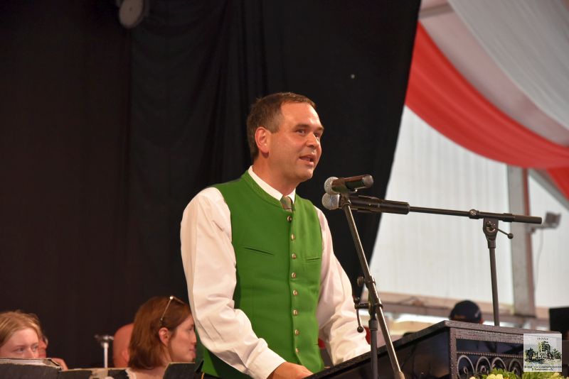 Der Höhepunkt war jedoch der Gaufestsonntag, der mit dem Festgottesdienst in der Pfarrkirche startete. Trachtenpfarrer Josef Tiefenböck stellte in seiner Predigt heraus, dass Brauchtum und Tradition noch immer die tragenden Säulen unter dem bayerischen Himmel sind. Und so ließ er es sich nicht nehmen mit Stadtpfarrer Alexander Aulinger mit einer „Hoibe“ „auf eine Gott gesegnete Zukunft der Trachtlerinnen und Trachtler“ anzustoßen.