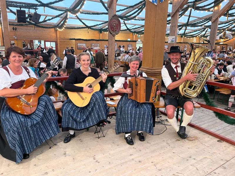 , das von den 22 bayrischen Trachtengauen organisiert wird. Auch der Dreiflüsse-Trachtengau hat sich dieses Jahr wieder daran beteiligt. Die Volkstanz- und Plattlergruppe aus dem Dreiflüsse-Trachtengau zeigte auf der “Oidn Wiesn“ ein bunt gemischtes Programm aus Volkstänzen und Plattlern, die im Dreiflüsse-Trachtengau gepflegt werden. Die Tanzgruppe zeigte Volkstänze, wie Niederbayerischer und Rehberger Landler oder Sternpolka, die Plattler schneidige Marschplattler oder das Birkenstoana Glöckerl. Auch die Goaßlschnoizer ernteten bei Alpbach Marsch und Gamsjäger-Marsch lautstarken Beifall von 4000 Festzeltbesuchern. Für die Musik bei den Auftritten sorgte die Soizweger Tanzlmusi. Auch im Volkssänger-Zelt Schützenliesl, wurden die Trachtler aus dem Dreiflüsse-Trachtengau herzlich von Traudi Siferlinger begrüßt. Dort sorgten die Schuhplattler und Goaßlschnoizn für Stimmung. Für einen letzten Auftritt im Museumszelt wurden die Burschen für ihren Auftritt im Museumszelt noch mit ein paar Mass Freibier belohnt. Alois Haydn, 2. Gauvorstand und auch der Busfahrer der Trachtler, bedankte sich bei allen, dass sie sich Zeit für die Fahrt zum Oktoberfest genommen haben, und lobte die Truppe für die gelungenen Auftritte.